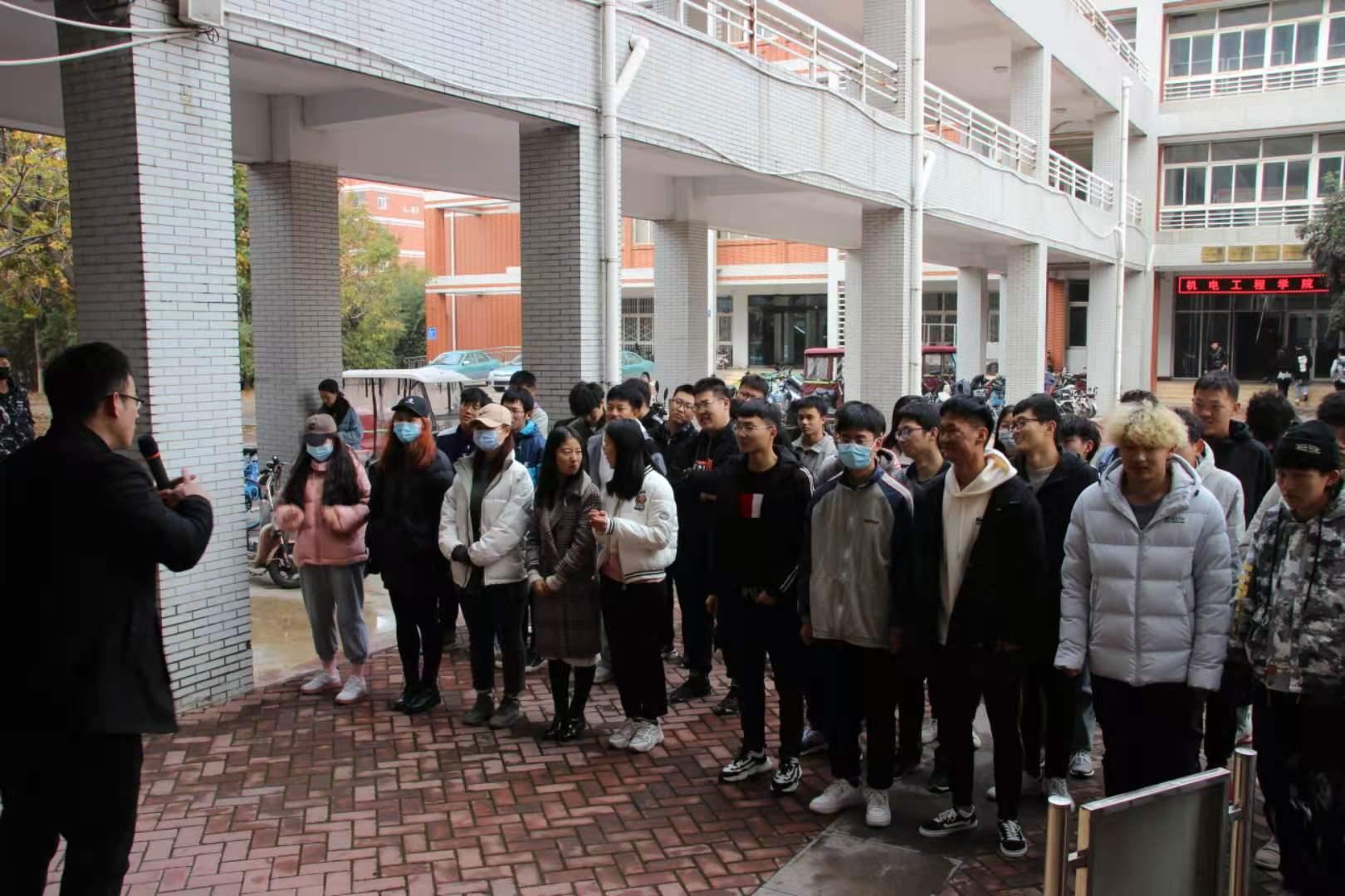 11月21日9点45分在专业老师的指导下,6163银河线路检测中心学生义务消防队队员在A09楼下进行消防安全演练。